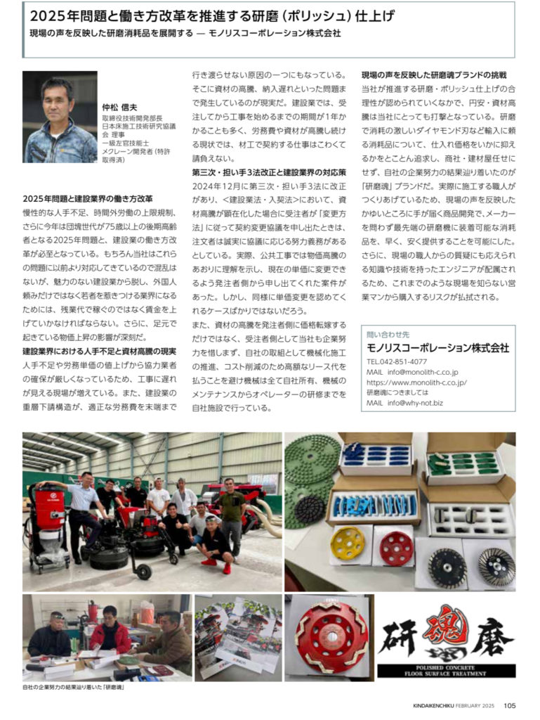 2025年問題と、働き方改革を推進する研磨(ポリッシュ)仕上げ 近代建築2025年2月号より