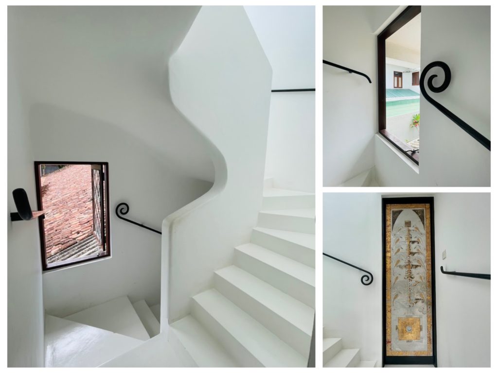 バワの仕事場だったこの家は、10年掛けて隣家を買い増し、買い増しで、4棟をくっつけた建物に改築を繰り返して、かなり複雑な内部構造になっています