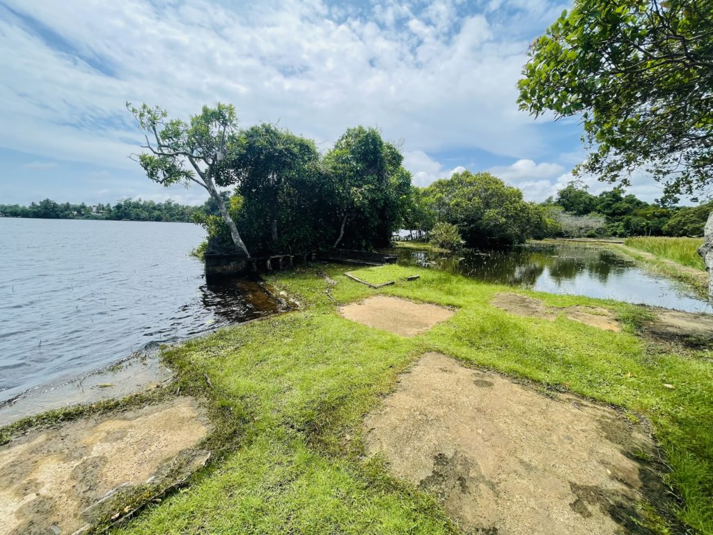 目の前に広がるデッドゥワ湖、汽水湖のため満潮時は海水が増えるので、ルヌ(塩)ガンガ(川)と名付けられた。