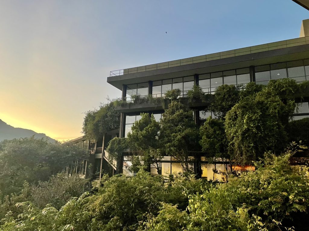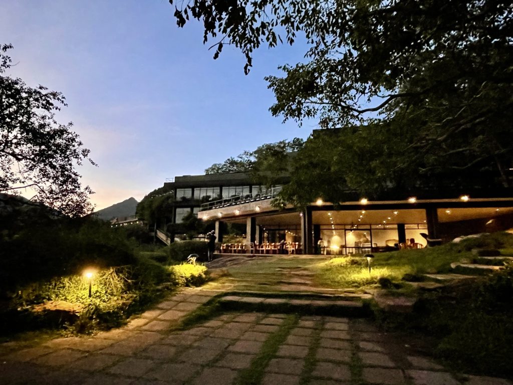 夕暮れの山あい、静けさの中に突然姿を現すホテル—ヘリタンス・カンダラマ(Heritance Kandalama)。