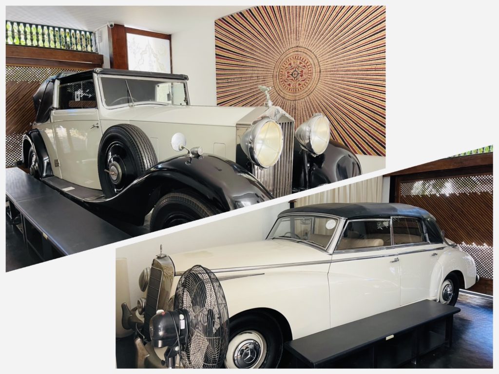 入口を入るとすぐ車庫、ビンテージの1934年ロールスロイスと、1953年メルセデスベンツが置かれている