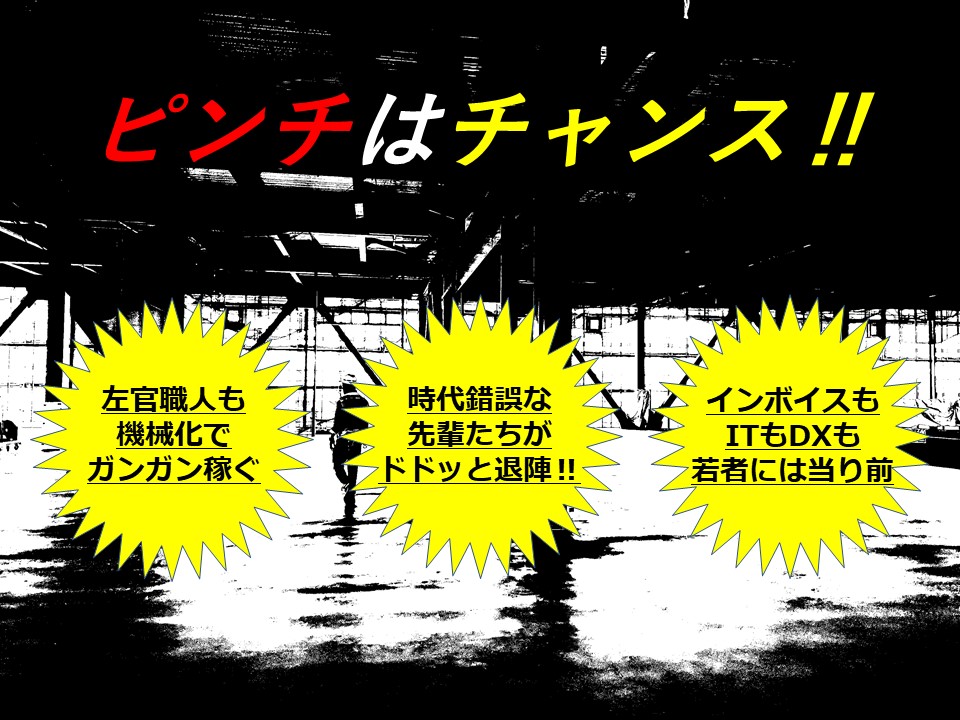 伝統や技術継承とは違う、新たな左官業「左官革命」!ビジネスビルやマンション、大規模流通倉庫では機械化とDXの今、もの心ついた時からスマホがあった世代には、それだけでアドバンテージ!さらには、日本人ならば人手不足を補う外国人材より「日本語能力」でアドバンテージ!